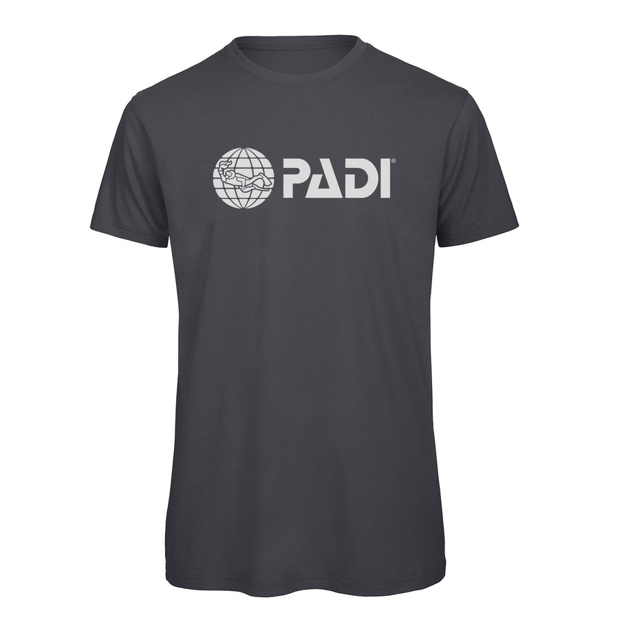 Staple crew neck tee with large PADI logo embellished across the chest.