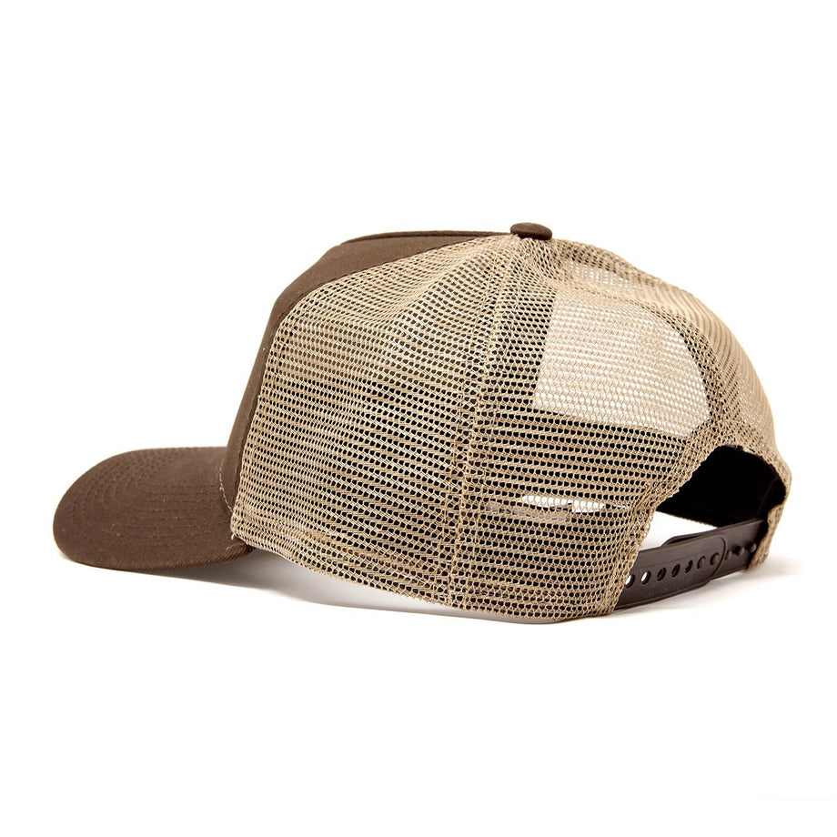 100% cotton twill front panels and bill; 100% polyester mid and back panels