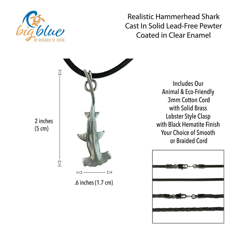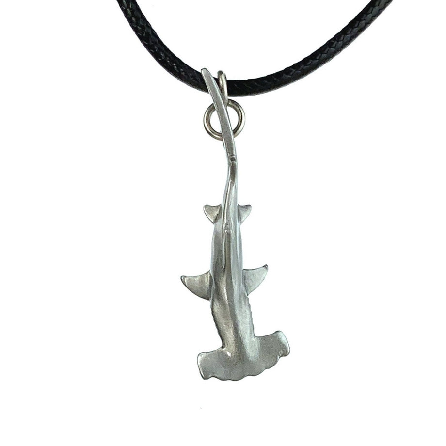 The iconic great hammerhead shark has been forever immortalized in this classic cord necklace. Shark lovers will adore this solid pewter, hand-crafted hammerhead charm, created with attention to the smallest details from the iconic hammer to the massive dorsal fin. Go ahead and show the world what you love.