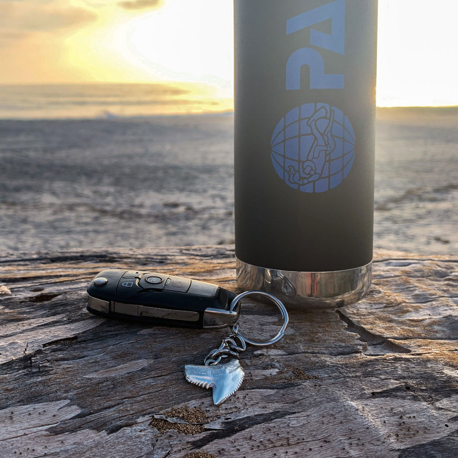 Chances are, if you are a shark diver, you are familiar with the most well-known tiger shark in the world: Emma. Whether you’ve met her already, or just hope to, you’ll love this key chain is cast from a real tooth she lost at Tiger Beach, Bahamas. Makes a great key chain, bag charm, or zipper pull.