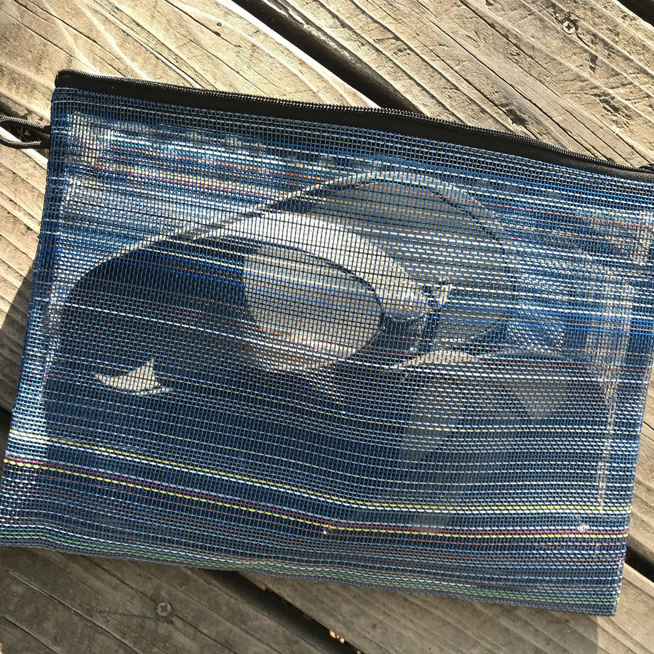 This versatile large zippered pouch’s uses are virtually endless! What’s more, the bags are made from remnants collected during the manufacturing process ensuring nothing is wasted. Made from upcycled vinyl mesh, the Gili Large Zippered Pouch is great for travel, sports, and commuting. Handmade in the USA from repurposed vinyl