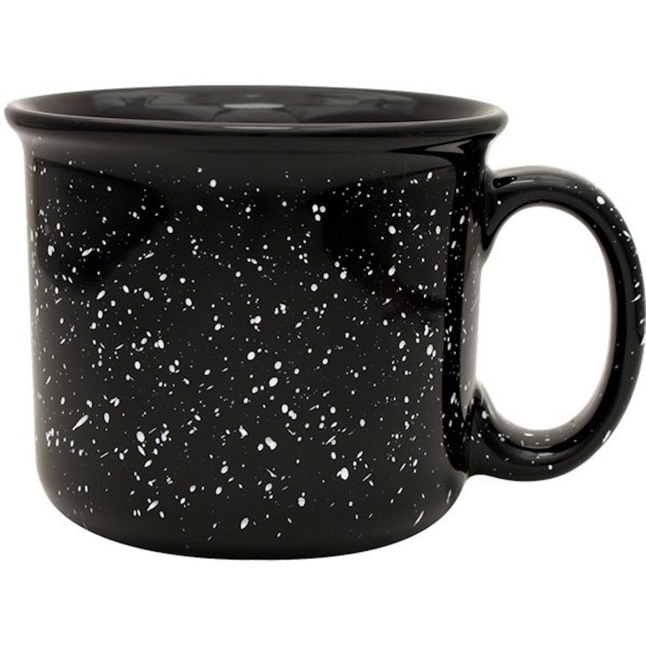 - Black finish with white speckles and white print