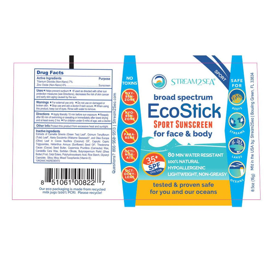 Stream2Sea Ecofriendly Reef-Safe Mineral Sunscreen Sport Stick