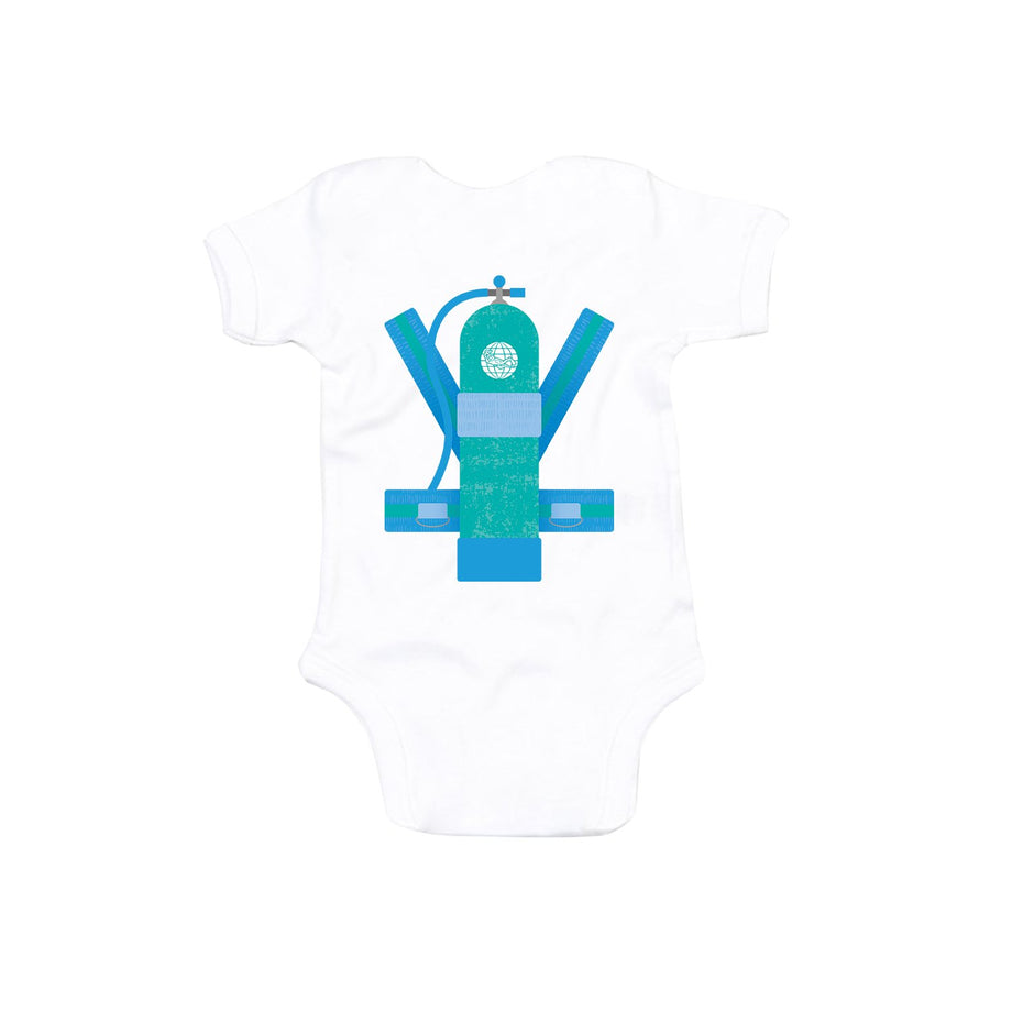 Have you or someone you know just added a future dive buddy to the family? This organic cotton, cozy onesie is perfect. Baby’s first regulator, BCD and scuba tank!