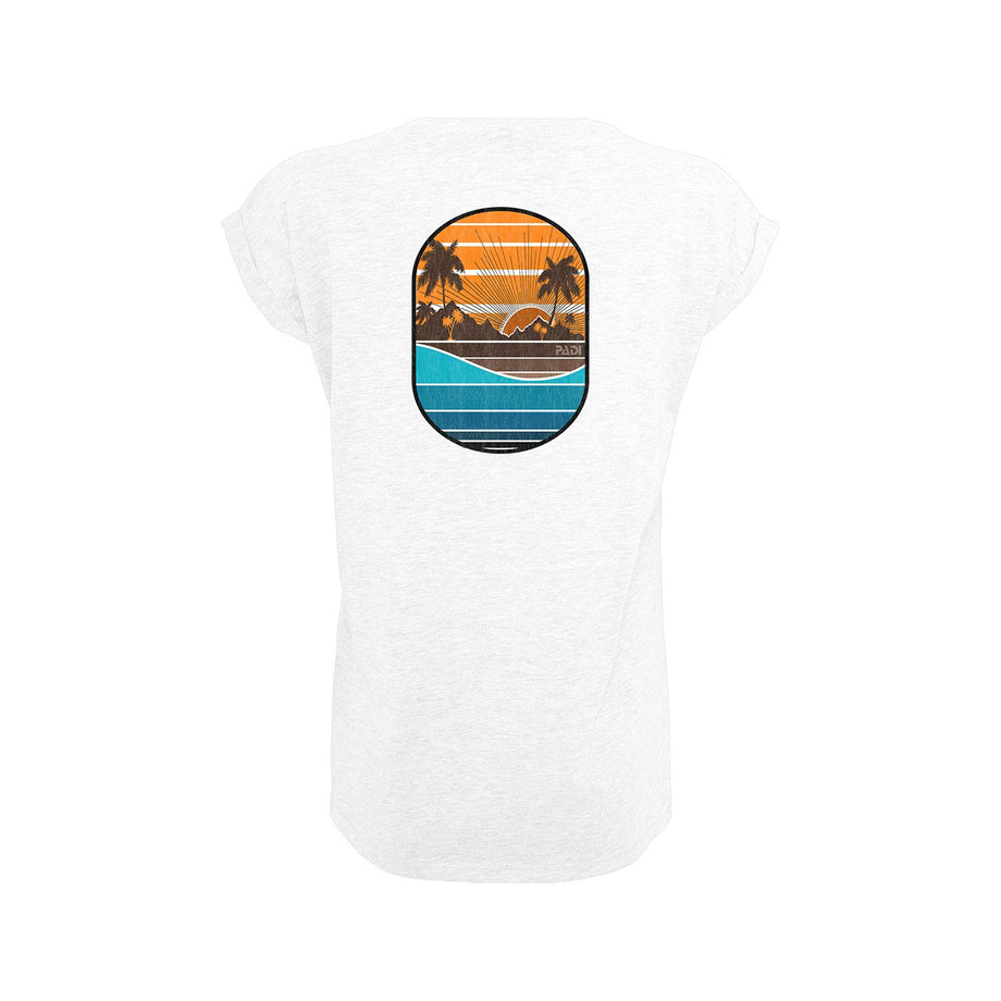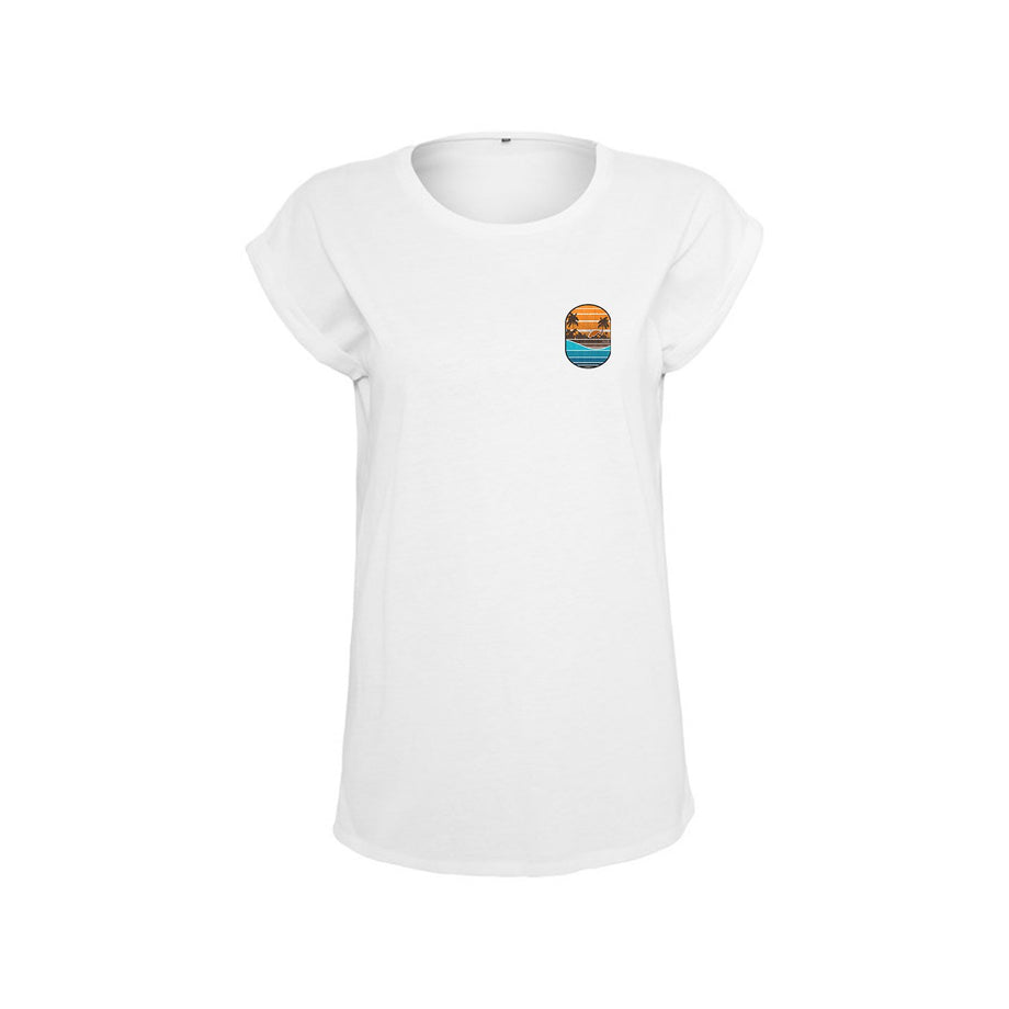 Channel island vibes with our Island Sunset women's tee. A retro, surf-inspired design is printed on flattering, loose fit tee with drop shoulders, flattering sleeves and a longer length.