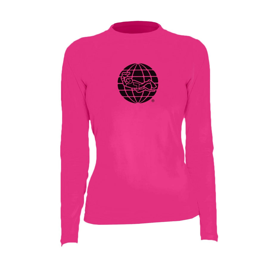 • Striking Hot Pink rashguard with white PADI globe print on the chest