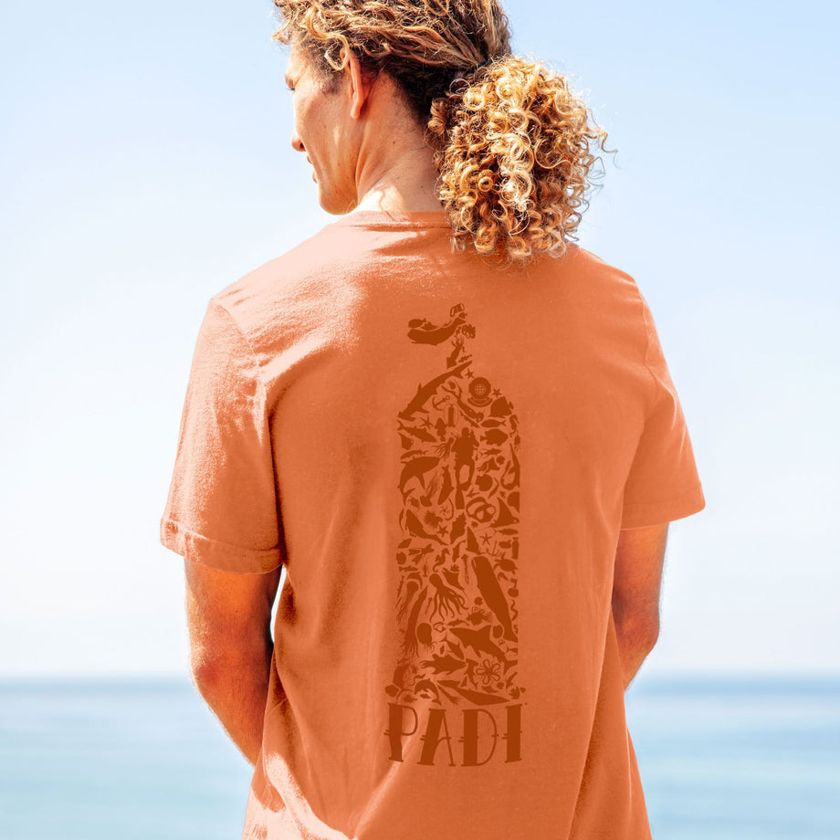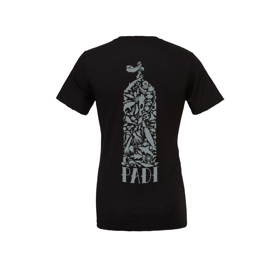 Now you can wear a scuba tank on your back every day with a PADI t-shirt design favorite, featuring dolphin, whales, sharks, sea horses and the other sea creatures you love. Embellished with a PADI logo on the front and a dive tank on the back, this cozy, unisex T-shirt fits and feels like a well-loved favorite from the start.