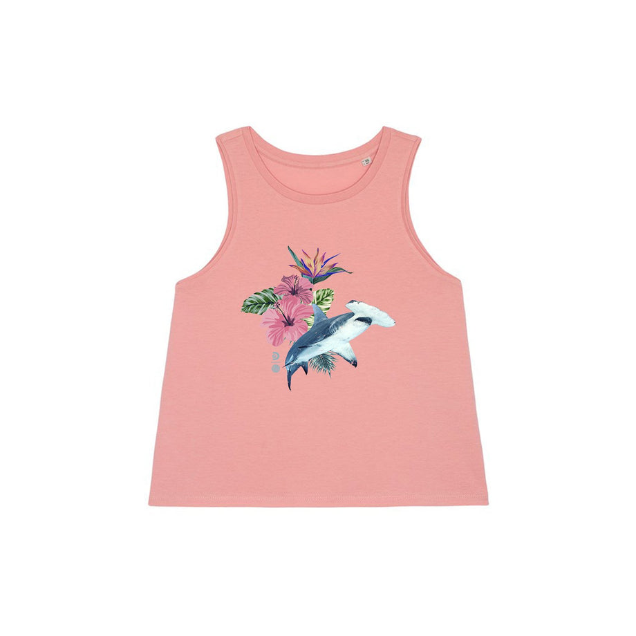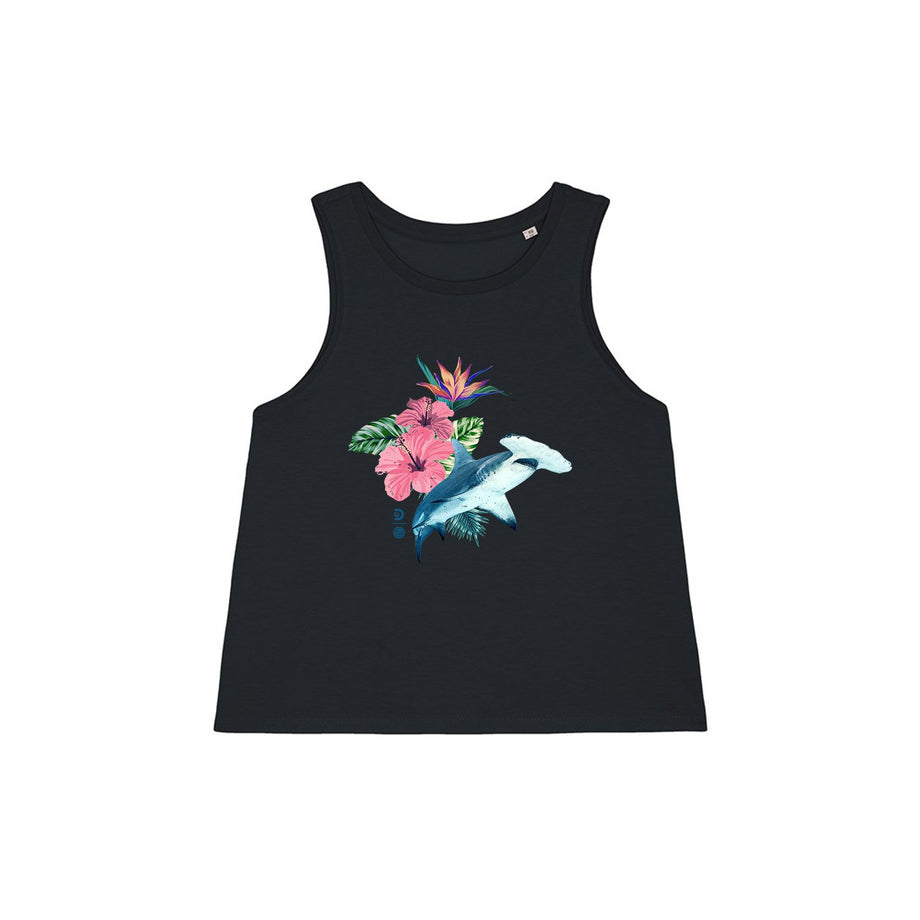 Live like it’s Shark Week all year round with this tropical hammerhead shark sleeveless t-shirt. Featuring a tropical design printed on an organic, cropped muscle tee, you can rock your love for sharks in style.