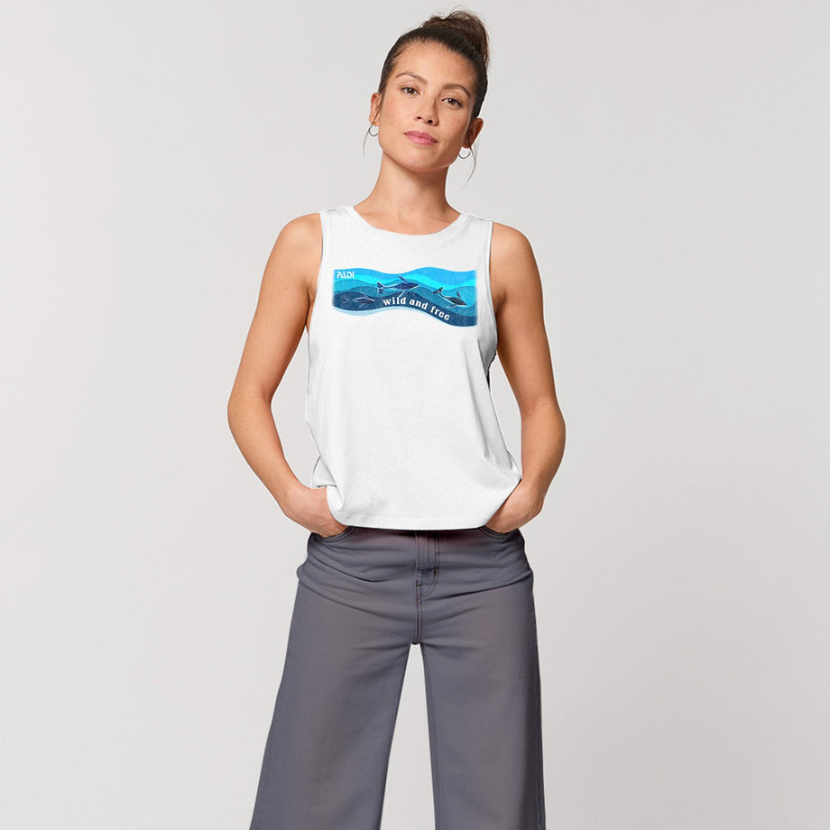 Sustainable and stylish, this throw-back, organic tank features a retro orca and wave design. Super soft and cozy, the tank features long arm holes and a flattering length that hits a bit below the natural waist.